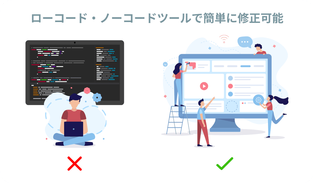 使ってみて気づいた点や修正したい点は、ドラッグ&ドロップで簡単に自分たちで修正ができます。