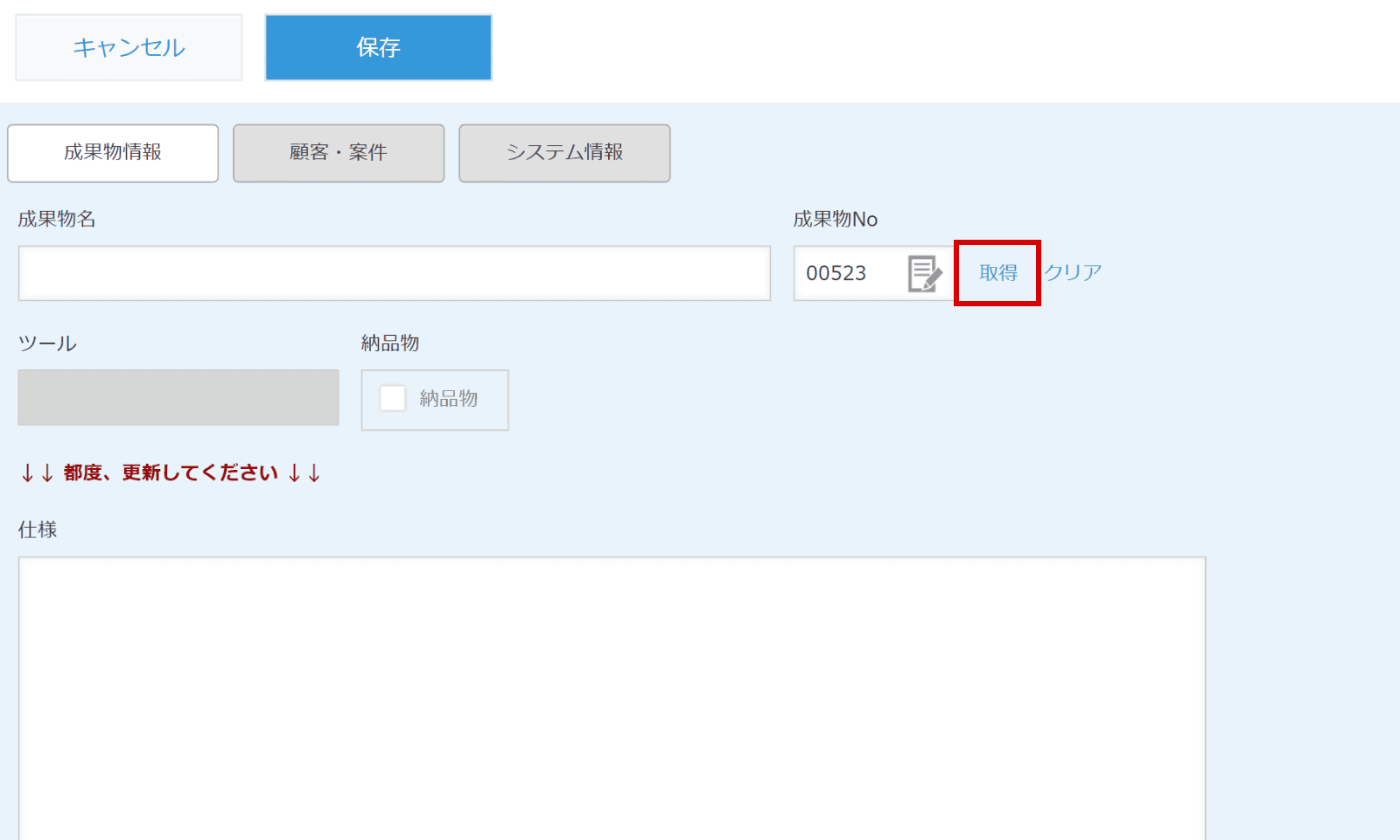 「取得」ボタンをクリック(タブで隠れている場合も)